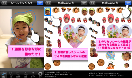 「みんなのシール」は写真画像を、指でなぞってシールを作りiPhoneから注文することができる印刷サービスアプリです。タッチパネルをなぞって自由自在な形のシールが作れる画期的アプリです。