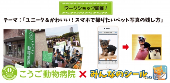 今回ご協力頂く、こうご動物病院(院長:向後 亜希、場所:東京都多摩市落合3-14-1)の利用者から参加者を募集し、「ユニークでかわいい/スマホで撮るペット写真の残し方」をテーマにスマホ写真の上手な撮り方・残し方を体験していただきます。